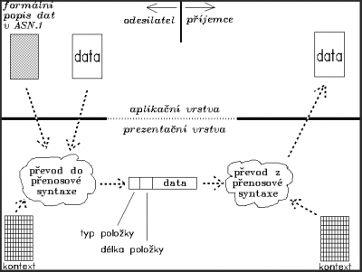 -kódování a konverze dat do podoby přijatelné pro cílovou stanici -komprese dat -šifrování dat -standardy: